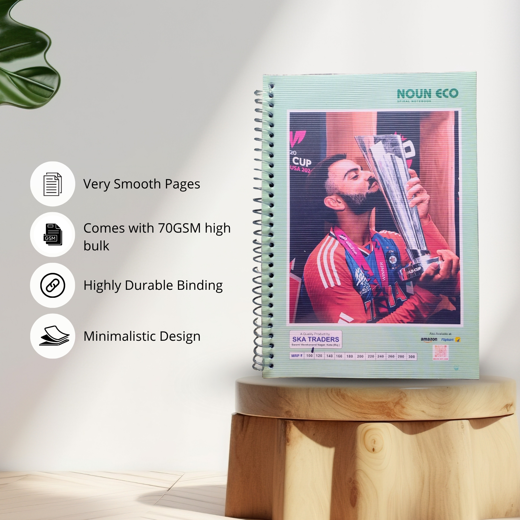 NOUN ECO Spiral Notebook – Designed for everyday inspiration. With 140 ultra-smooth 70 GSM pages, a durable spiral binding, and a waterproof plastic cover, this notebook combines quality, comfort, and protection. Perfect for students, professionals, and creators who value simplicity and style.